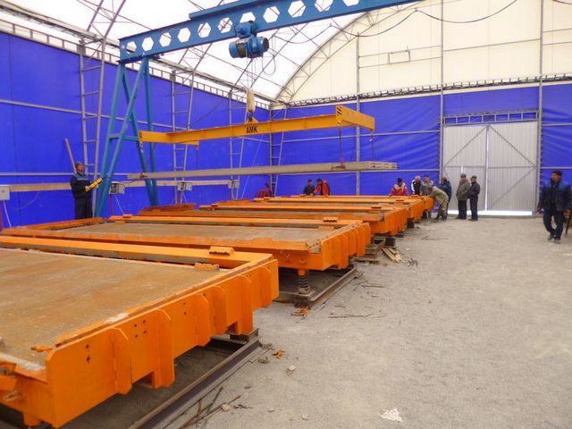 - Заливка бетона. На разных предприятиях бетон заливают двумя способами: на стенде (в небольших цехах) или на конвейерной линии.