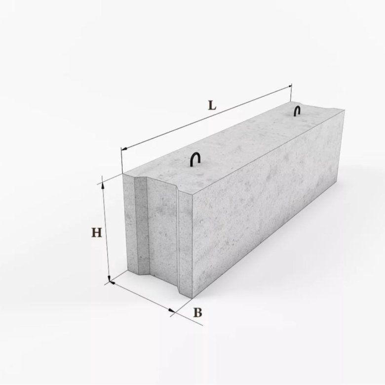 Вес фундаментных блоков ФБС зависит от вида бетона, из которого они изготовлены. В производстве чаще всего используются тяжелый бетон с плотностью 2400 кг/м3, силикатный бетон 2000 кг/м3 и легкий керамзитовый бетон плотностью 1800 кг/м3.